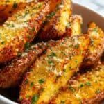 Keywords: garlic parmesan potato wedges, baked potato wedges, crispy potato wedges, easy potato side dish, Italian seasoning potatoes