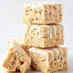 - Cut and Glaze Treats: Cut the treats into 12 rectangles or 16 squares. Drizzle the glaze over the top evenly.