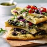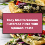 This Best Mediterranean Flatbread Pizza combines fresh, vibrant flavors with a crispy, golden crust. Topped with spinach pesto, mozzarella, and a colorful array of Mediterranean ingredients, it’s perfect for a quick weekday meal or a casual gathering.