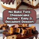 This Best No Bake Twix Cheesecake is a rich, creamy dessert that combines all the beloved flavors of a Twix bar—caramel, chocolate, and buttery biscuit—in a luscious no-bake cheesecake form. Featuring a crunchy digestive biscuit crust, smooth cream cheese filling swirled with homemade salted caramel, and topped with a silky chocolate ganache, this cheesecake is easy to assemble and perfect for impressing guests without turning on the oven. It’s ideal for make-ahead entertaining and serves beautifully chilled, garnished with extra Twix pieces, caramel shards, or crushed biscuits for added texture.