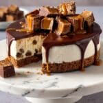 Keywords: no bake cheesecake, Twix cheesecake, caramel cheesecake, chocolate ganache, no oven cheesecake, dessert, easy cheesecake, party dessert