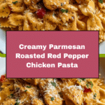 This comforting and flavorful Best Parmesan Roasted Red Pepper Chicken combines tender seared chicken breasts with creamy garlic parmesan sauce and roasted red peppers, tossed with al dente bowtie pasta. Perfect for cozy nights, this dish delivers a rich, indulgent meal with a balanced blend of savory, creamy, and subtly spicy notes, finished with fresh herbs and optional heat or tangy accents.