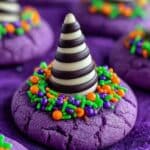 These Best Witch Hat Halloween Cookies combine a soft, peanut butter-flavored sugar cookie base with a festive purple hue and a chocolate kiss centerpiece, perfect for spooky celebrations. Coated in Halloween sprinkles or purple sanding sugar, these cookies are fun to make and delightfully festive for Halloween parties.