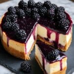 - Assemble & Serve: Once the cheesecake has cooled and set, spread the blackberry topping evenly over the surface. Refrigerate the assembled cheesecake for at least 4 hours, preferably overnight, to allow flavors to meld and topping to set. Before serving, garnish with fresh blackberries for an elegant touch. Enjoy your decadent dessert!