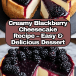 Blackberry Cheesecake is a luscious dessert that combines creamy, rich cheesecake with the sweet and tart flavor of fresh blackberries. This beautiful purple-topped treat not only pleases the palate but also brightens up any occasion with its vibrant color and irresistible taste. Perfect for celebrations or a special dinner at home, it’s a timeless classic with a fruity twist.