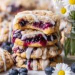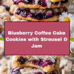 Delight in these Blueberry Coffee Cake Cookies featuring a luscious homemade blueberry jam, tender cookie dough loaded with fresh blueberries, and a crumbly brown sugar streusel topping. Finished with a sweet powdered sugar glaze, these cookies offer a perfect balance of fruity, buttery, and sweet flavors, ideal for breakfast or an indulgent snack.