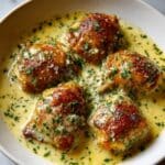 Bobby Flay’s Chicken Thighs with Creamy Garlic Sauce features tender, bone-in chicken thighs seared to a golden crisp and simmered in a luscious, garlicky cream sauce. This skillet-cooked dish offers a perfect blend of savory, tangy, and creamy flavors, making it an indulgent yet simple dinner option.