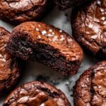 These decadent Brownie Cookies combine the rich, fudgy texture of brownies with the crisp, crinkly tops of classic cookies. Made with dark chocolate and a blend of white and brown sugars, they deliver a perfect balance of chewy and chewy-soft textures. Sprinkled with flaky sea salt, these cookies offer a sophisticated sweet and salty flavor that’s perfect for any chocolate lover.