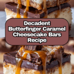 These Butterfinger Caramel Cheesecake Bars combine a buttery graham cracker crust with a smooth, creamy cheesecake layer studded with crunchy Butterfinger candy pieces. Topped with rich caramel sauce and extra Butterfinger bits, they offer a perfect balance of flavors and textures for a decadent dessert experience.