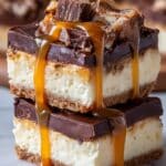 Keywords: Butterfinger cheesecake bars, caramel cheesecake bars, candy bar cheesecake, easy cheesecake recipe, no crust cheesecake bars