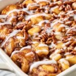 - Serve with Icing: Once baked, remove from oven and drizzle the reserved cinnamon roll icing over the casserole before serving warm.