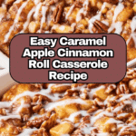 This Caramel Apple Cinnamon Roll Casserole combines tender diced Granny Smith and Pink Lady apples cooked in a buttery caramel sauce with refrigerated cinnamon rolls baked to golden perfection. It’s a simple, comforting breakfast or dessert casserole with warm notes of cinnamon, nutmeg, and a drizzle of sweet icing and pecans for crunch.