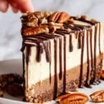- Add Caramel and Serve: Before serving, gently warm the caramel sauce and spread it evenly over the top of the chilled cheesecake. Sprinkle with flaky sea salt if desired to enhance the flavor contrast. Slice and enjoy your indulgent Caramel Brownie Cheesecake.