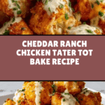 Cheddar Ranch Chicken Tater Tot Bake is a delicious and comforting dish perfect for busy weeknights. Combining tender shredded chicken, creamy ranch dressing, crispy tater tots, and melted cheddar, it’s sure to please the whole family with minimal effort.