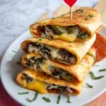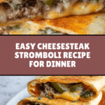 This Cheesesteak Stromboli recipe features a savory filling of seasoned beef sandwich steaks, sautéed onions, and melted American cheese wrapped in pizza dough and baked to golden perfection. It’s a perfect hearty meal that combines the flavors of a classic cheesesteak in a convenient stromboli form.