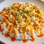 This Cheesy Buffalo Chicken and Rice recipe combines tender shredded chicken, spicy buffalo sauce, and creamy melted cheddar cheese into a comforting one-pan meal. Cooked with long-grain rice and flavorful seasonings, this dish is perfect for a hearty lunch or dinner with a spicy kick and cheesy goodness.
