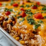 This Cheesy Salsa Chicken and Rice Bake is a comforting and flavorful one-dish meal perfect for busy weeknights. Combining tender shredded chicken, cooked rice, corn, black beans, and a spicy salsa base, all topped with melted cheddar cheese, this casserole delivers a delicious blend of Tex-Mex flavors baked to bubbly perfection.