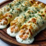 These Cheesy Seafood Tortilla Bombs are a delicious and creamy treat packed with shrimp and crab meat. Wrapped in soft flour tortillas and smothered in a rich garlic cream sauce, they make an impressive appetizer or snack for seafood lovers.