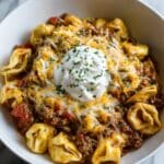 Keywords: taco tortellini, cheesy pasta, ground beef recipe, Tex-Mex pasta, quick weeknight dinner, creamy tortellini