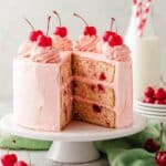 Keywords: cherry chip cake, cherry cake, layered cherry cake, cherry buttercream frosting, holiday cake, celebration cake