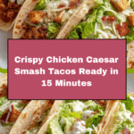 Crispy, juicy Chicken Caesar Smash Tacos combine seasoned ground chicken cooked directly on small flour tortillas for a golden crispy base, topped with fresh romaine lettuce, creamy Caesar dressing, grated parmesan, and crunchy bacon bits. Ready in under 15 minutes, these tacos make a quick, satisfying dinner perfect for busy weeknights.