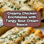 This Chicken Enchiladas with Sour Cream White Sauce recipe features tender shredded chicken and melted Monterey Jack cheese wrapped in soft flour tortillas, all generously covered in a creamy, flavorful white sauce made with sour cream, green chilies, and spices. Baked to perfection until bubbly and golden, these enchiladas offer a comforting twist on a classic Mexican dish, perfect for family dinners or gatherings.