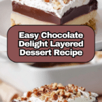 Creamy, dreamy, and irresistibly nostalgic, this Chocolate Delight is a layered dessert perfect for potlucks, holidays, and satisfying sweet cravings. It features a buttery pecan crust, a smooth cream cheese layer, rich chocolate pudding, and fluffy whipped topping, all chilled to perfection for an easy-to-make, crowd-pleasing treat.