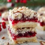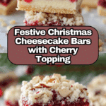These Christmas Cheesecake Bars combine a buttery sugar cookie crust with a creamy cheesecake layer, topped with festive cherry pie filling and crunchy almond crumble. Perfect for holiday celebrations, these bars are easy to make and deliver a delightful balance of flavors and textures.