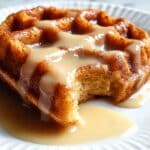 Store any leftover cinnamon roll bread pudding in an airtight container in the refrigerator for up to 3 days. Reheat in the oven at 325°F (160°C) for about 10 minutes or microwave individual servings for 30 seconds to warm through. The icing may become less decorative after reheating, but the flavor remains delicious.