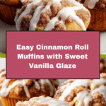 Cinnamon Roll Muffins combine the cozy flavors of classic cinnamon rolls with the convenience of a muffin. These soft, fluffy treats feature a sweet cinnamon swirl and a smooth vanilla glaze, perfect for breakfast, dessert, or a comforting snack.