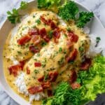 - Serve the Chicken Bacon Ranch: Once cooked, serve the chicken and sauce over pasta, rice, or potatoes. Generously spoon sauce over each portion to allow the starch to absorb the delicious flavors. Optionally, garnish with chopped fresh herbs or an additional handful of cheddar cheese for added vibrancy.