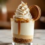 These Cookie Butter Cheesecake Cups offer a luscious, no-bake dessert with a crunchy graham cracker crust and a creamy, smooth cookie butter cheesecake filling. Perfect for individual servings, these cups combine the rich flavor of cookie butter with classic cheesecake texture, garnished with a drizzle of cookie butter and crunchy toppings for a delightful treat.