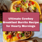 The Cowboy Breakfast Burrito is a hearty and flavorful morning meal that combines savory sausage, crispy potatoes, tender scrambled eggs, and melted cheese all wrapped in a warm flour tortilla. Perfect for starting your day with a satisfying and delicious feast.
