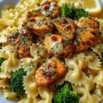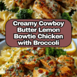 This Cowboy Butter Lemon Bowtie Chicken with Broccoli is a flavorful and satisfying one-skillet meal featuring tender Cajun-seasoned chicken, al dente bowtie pasta, and vibrant broccoli tossed in a luscious lemon-garlic butter sauce with a hint of spice. Sprinkled with fresh herbs and Parmesan cheese, it’s a perfect weeknight dinner that’s both easy to prepare and full of bold, comforting flavors.
