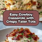 Cowboy Casserole is a hearty and comforting dish that’s perfect for family dinners. It combines savory ground beef, creamy mushroom soup, crispy tater tots, and melted cheese for a satisfying one-pan meal anyone will love.