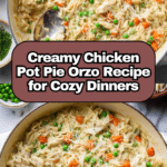 Cozy Chicken Pot Pie Orzo is a comforting one-pot meal that combines tender chicken, vegetables, and creamy sauce with the delightful texture of orzo pasta. It’s a perfect dish for chilly evenings when you want something warm and satisfying without the fuss of a traditional pot pie crust.