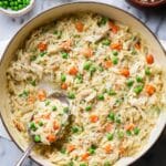 Keywords: chicken pot pie orzo, creamy chicken pasta, one pot meal, comfort food, easy dinner, quick chicken recipe
