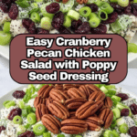 This Cranberry Pecan Chicken Salad with Poppy Seed Dressing is a delightful mix of sweet, savory, and crunchy flavors. Perfect for a light lunch or a refreshing dinner, it combines tender chicken, crunchy pecans, and tart dried cranberries, all wrapped in a creamy, tangy dressing.