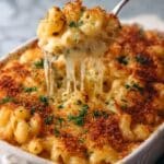 - Prepare Topping: In a small bowl, mix the panko breadcrumbs with grated parmesan and melted butter until the crumbs are evenly coated. Sprinkle this mixture evenly over the mac and cheese. Optionally, scatter chopped fresh parsley on top for color and freshness.