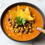 - Serve and Garnish: Ladle the warm Creamy Cowboy Soup into bowls, and if desired, top with sliced green onions or a handful of crunchy tortilla chips for added texture and flavor.