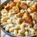 Keywords: mac and cheese, creamy mac and cheese, honey pepper chicken, comfort food, cheesy chicken pasta, weeknight dinner, one-pan meal