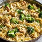 Keywords: rotisserie chicken pasta, broccoli pasta, creamy chicken pasta, easy weeknight dinner, creamy pasta sauce, penne pasta recipe, quick dinner recipes
