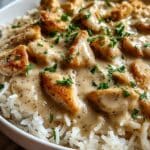 Creamy Smothered Chicken & Rice is a comforting dish that combines tender chicken thighs with a rich, savory sauce. This recipe features a luscious blend of heavy cream, chicken broth, and a hint of Worcestershire sauce for a deeply satisfying meal that’s perfect any night of the week.