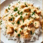 - Serve: Serve the creamy smothered chicken and mushroom sauce over cooked white rice. Garnish with fresh chopped parsley for a bright finish.
