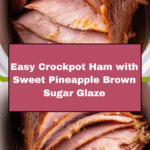 Keywords: crockpot ham, slow cooker ham, pineapple ham, brown sugar glaze, holiday ham, easy ham recipe