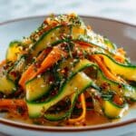 A refreshing and easy-to-make Cucumber Carrot Salad featuring crisp julienned vegetables tossed in a zesty, slightly spicy Asian-inspired dressing with sesame seeds and fresh herbs. Perfect as a light side dish or a base for a wholesome meal when topped with protein.