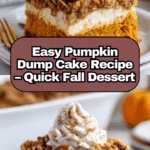 This Easy Pumpkin Dump Cake is a simple, festive dessert perfect for fall gatherings. Combining pumpkin purée, warm spices, and a buttery cake topping, it requires minimal prep and yields a moist, flavorful cake that’s delicious served with whipped cream or vanilla ice cream.