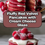 Keywords: Red Velvet Pancakes, Valentine’s Brunch Recipe, Cream Cheese Glaze, Fluffy Pancakes, Breakfast, Dessert Pancakes