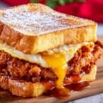 Keywords: French toast sandwich, fried chicken sandwich, brunch recipe, sweet and savory, chicken sandwich with French toast