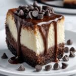 - Finish and Serve: Pour the ganache evenly over the chilled cheesecake. Garnish with extra chocolate chips on top. Slice and serve your indulgent Fudgy Brownie Bottom Cheesecake.